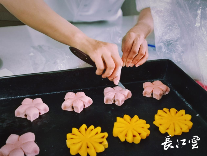 现场,湖北经济学院的“小名人”沈思静也在专注的雕琢面点。1998年出生的沈思静能吃苦,脚踏实地练就了过硬本领,曾获第45届世界技能大赛烹饪(西餐)项目全国选拔赛第2名、总决赛第3名,曾被授予“湖北青年五四奖章”,在磨炼专业技能的道路中她也从未止步。沈思静说:“对于‘技能人’来说,参加不同层次、不同类型、不同规格的比赛可以丰富自己的烹饪阅历,更好地学习楚菜文化、传承楚菜精神,为打造楚菜品牌贡献自己的力量。”沈思静坚信能在烹饪技能的道路上越走越远,同时她想带动更多青年人走上技能成才、技能报国之路。